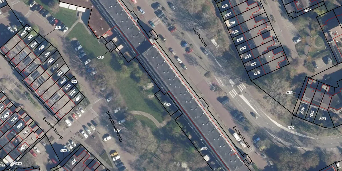 Het perceel waarop Bolderikkamp 96 staat heeft een oppervlakte van 4596 m². Dit is een zeer groot perceel. De perceeloppervlakte wordt geregistreerd door het Kadaster. Gedetailleerde informatie over de maten van dit perceel kunt u vinden in het rapport Kadastrale kaart met maatvoering van Bolderikkamp 96.