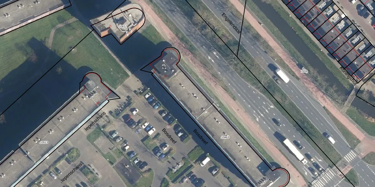 Het perceel waarop Bosdreef 39 staat heeft een oppervlakte van 1417 m². Dit is een zeer groot perceel. De perceeloppervlakte wordt geregistreerd door het Kadaster. Gedetailleerde informatie over de maten van dit perceel kunt u vinden in het rapport Kadastrale kaart met maatvoering van Bosdreef 39.