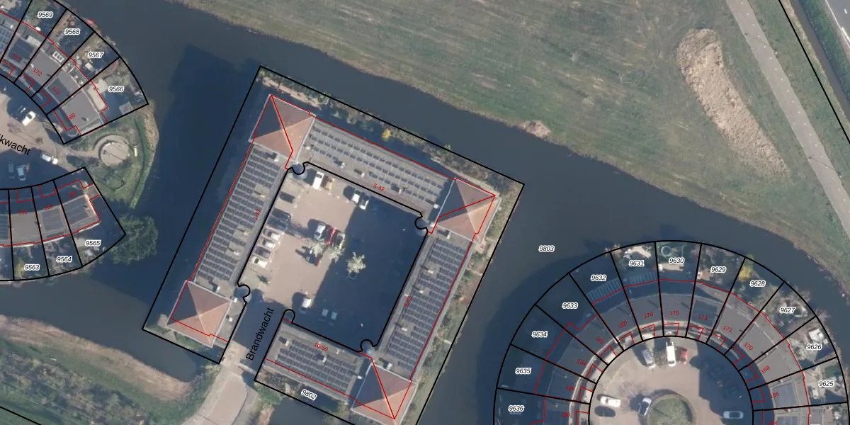 Het perceel waarop Brandwacht 7 staat heeft een oppervlakte van 3232 m². Dit is een zeer groot perceel. De perceeloppervlakte wordt geregistreerd door het Kadaster. Gedetailleerde informatie over de maten van dit perceel kunt u vinden in het rapport Kadastrale kaart met maatvoering van Brandwacht 7.