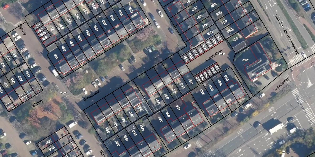 Het perceel waarop Brederode 14 staat heeft een oppervlakte van 156 m². Dit is een middelgroot perceel. De perceeloppervlakte wordt geregistreerd door het Kadaster. Gedetailleerde informatie over de maten van dit perceel kunt u vinden in het rapport Kadastrale kaart met maatvoering van Brederode 14.