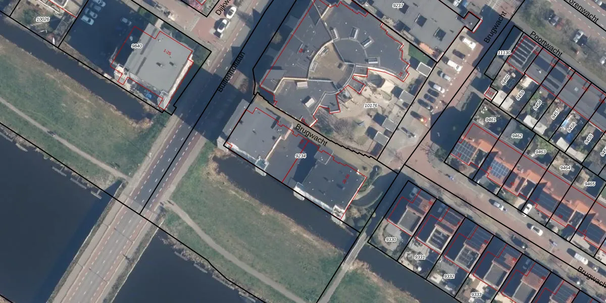 Brugwacht 50 is gelegen op kadastraal perceel LDD00A9234. Deze kadastrale aanduiding is uniek en wordt gebruikt door het Kadaster om eigendomsrechten en andere zakelijke rechten vast te leggen. Het perceel maakt onderdeel uit van de kadastrale gemeente Leiderdorp.