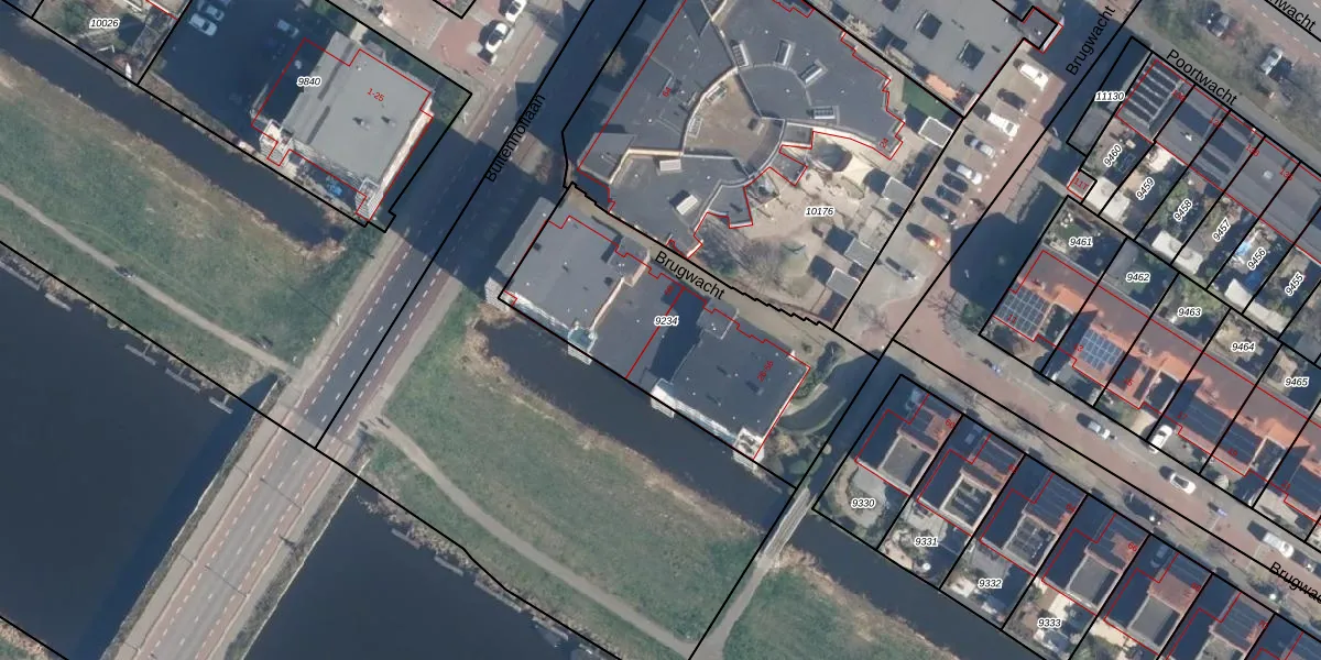 Brugwacht 54 is gelegen op kadastraal perceel LDD00A9234. Deze kadastrale aanduiding is uniek en wordt gebruikt door het Kadaster om eigendomsrechten en andere zakelijke rechten vast te leggen. Het perceel maakt onderdeel uit van de kadastrale gemeente Leiderdorp.