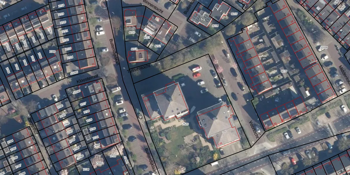 Buitendijklaan 2-G is gelegen op kadastraal perceel LDD00A7520. Deze kadastrale aanduiding is uniek en wordt gebruikt door het Kadaster om eigendomsrechten en andere zakelijke rechten vast te leggen. Het perceel maakt onderdeel uit van de kadastrale gemeente Leiderdorp.