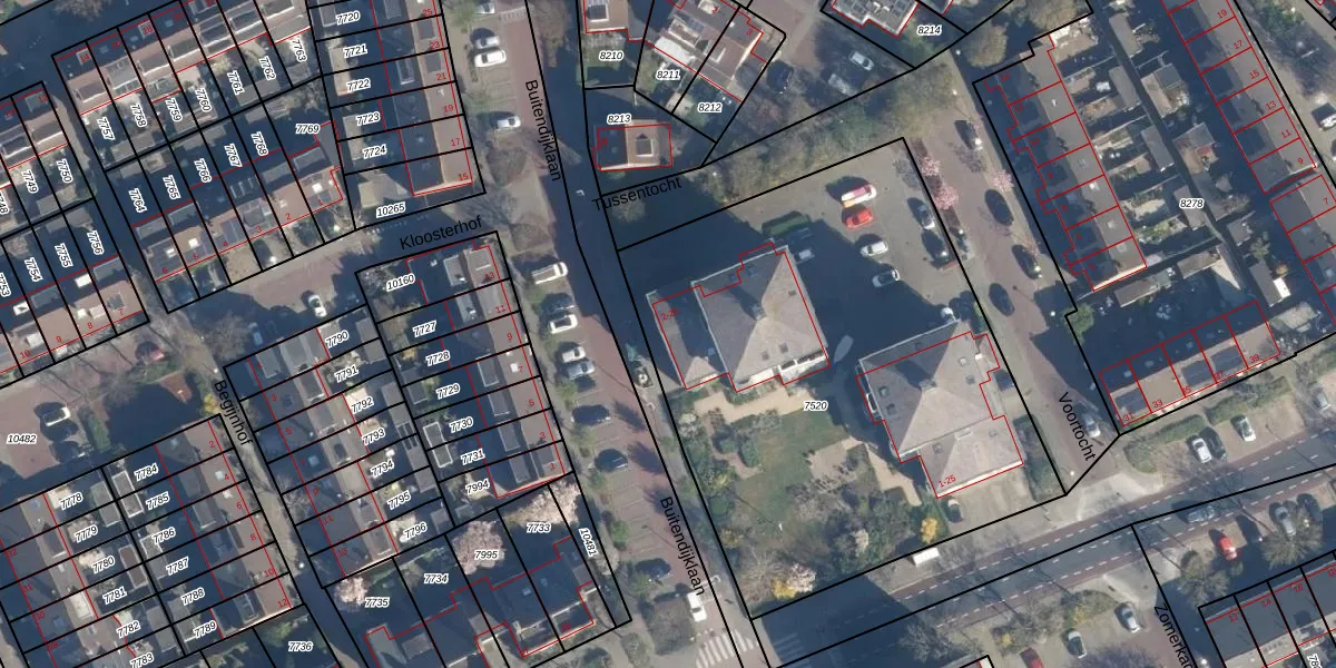 Buitendijklaan 2-C is gelegen op kadastraal perceel LDD00A7520. Deze kadastrale aanduiding is uniek en wordt gebruikt door het Kadaster om eigendomsrechten en andere zakelijke rechten vast te leggen. Het perceel maakt onderdeel uit van de kadastrale gemeente Leiderdorp.