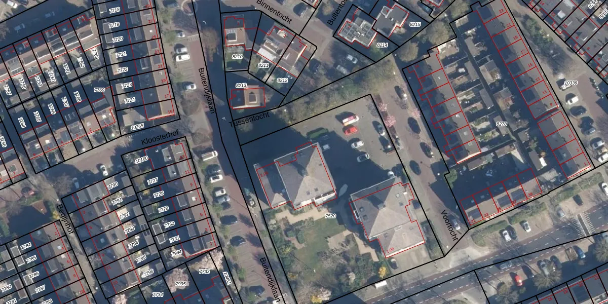 Buitendijklaan 24 is gelegen op kadastraal perceel LDD00A7520. Deze kadastrale aanduiding is uniek en wordt gebruikt door het Kadaster om eigendomsrechten en andere zakelijke rechten vast te leggen. Het perceel maakt onderdeel uit van de kadastrale gemeente Leiderdorp.