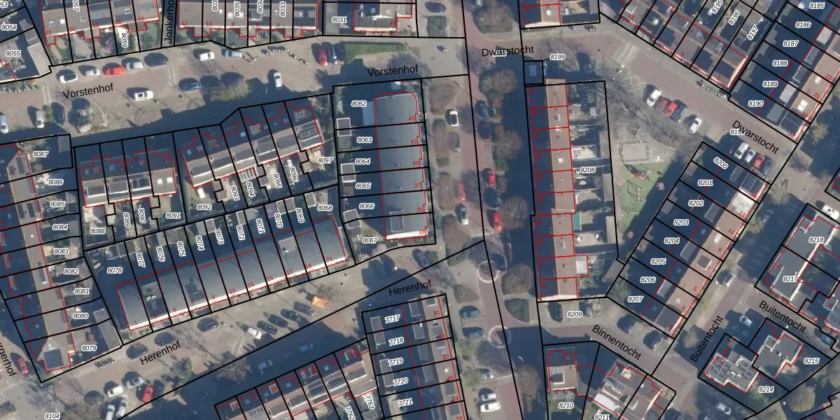 Het perceel waarop het adres ligt is LDD00-A-8066. De afkorting 'LDD00' staat voor kadastrale gemeente Leiderdorp. Het perceel is 121 m² groot. Dat is kleiner dan de gemiddelde perceeloppervlakte in Leiderdorp, dat op 1289,87 m² ligt. Het kleinste perceel in de kadastrale gemeente is 0 m² groot. De grootste perceeloppervlakte is 43,4 ha. Er zijn geen andere adressen aanwezig op het perceel. De laatste wijziging in het de Basisregistratie Kadaster (BRK) was op 31-01-2002.
