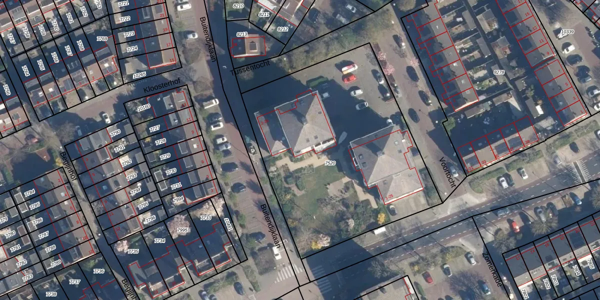 Buitendijklaan 4 is gelegen op kadastraal perceel LDD00A7520. Deze kadastrale aanduiding is uniek en wordt gebruikt door het Kadaster om eigendomsrechten en andere zakelijke rechten vast te leggen. Het perceel maakt onderdeel uit van de kadastrale gemeente Leiderdorp.