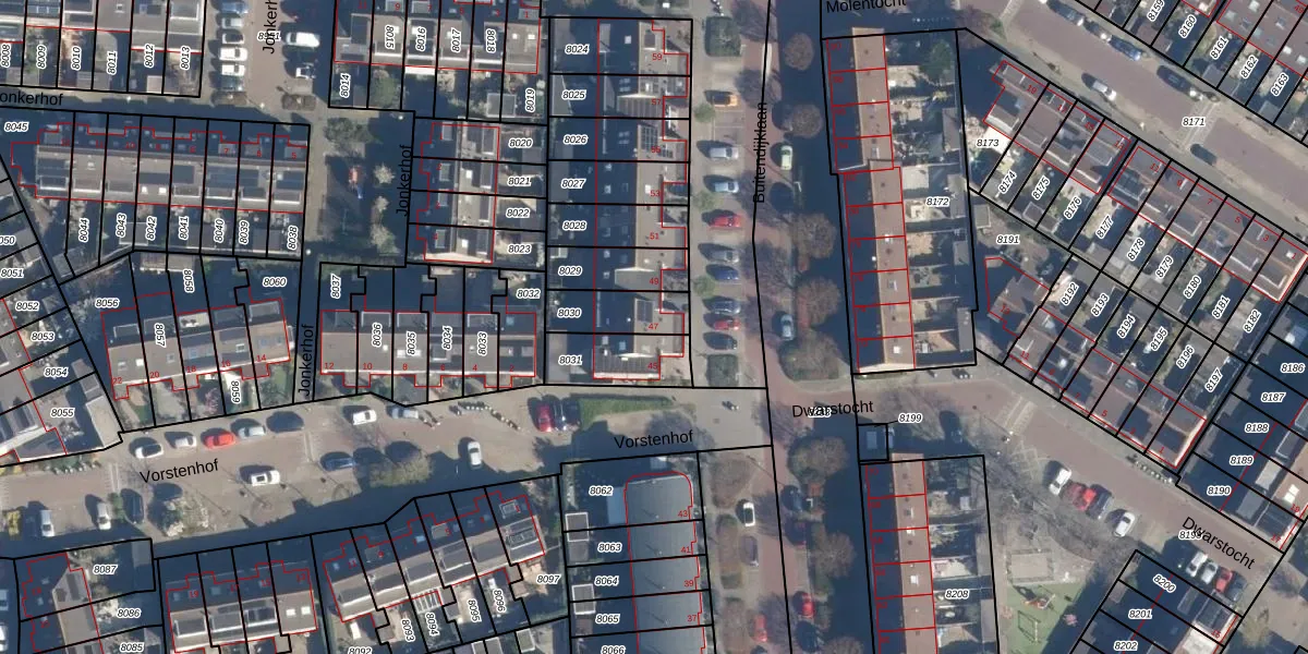 Buitendijklaan 47 is gelegen op kadastraal perceel LDD00A8030. Deze kadastrale aanduiding is uniek en wordt gebruikt door het Kadaster om eigendomsrechten en andere zakelijke rechten vast te leggen. Het perceel maakt onderdeel uit van de kadastrale gemeente Leiderdorp.