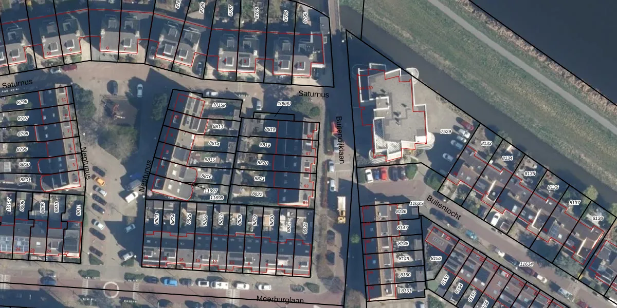 Buitendijklaan 67 is gelegen op kadastraal perceel LDD00A8819. Deze kadastrale aanduiding is uniek en wordt gebruikt door het Kadaster om eigendomsrechten en andere zakelijke rechten vast te leggen. Het perceel maakt onderdeel uit van de kadastrale gemeente Leiderdorp.