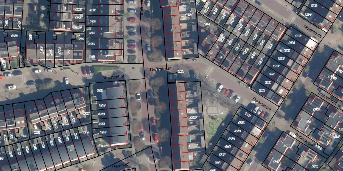 Het adres ligt op het perceel LDD00-A-8208, dat zich in de kadastrale gemeente Leiderdorp bevindt. Het perceel is 990 m² groot. Dat is kleiner dan de gemiddelde perceeloppervlakte in Leiderdorp, dat op 1289,87 m² ligt. De grootste perceeloppervlakte in de kadastrale gemeente is 43,4 ha. De kleinste oppervlakte bedraagt 0 m². Op het perceel zijn 10 adressen aanwezig. De laatste wijziging in het de Basisregistratie Kadaster (BRK) was op 31-01-2002.