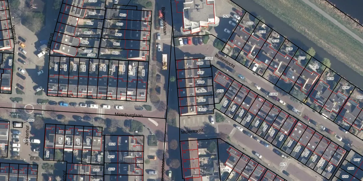 Het perceel waarop Buitendijklaan 96 staat heeft een oppervlakte van 100 m². Dit is een middelgroot perceel. De perceeloppervlakte wordt geregistreerd door het Kadaster. Gedetailleerde informatie over de maten van dit perceel kunt u vinden in het rapport Kadastrale kaart met maatvoering van Buitendijklaan 96.