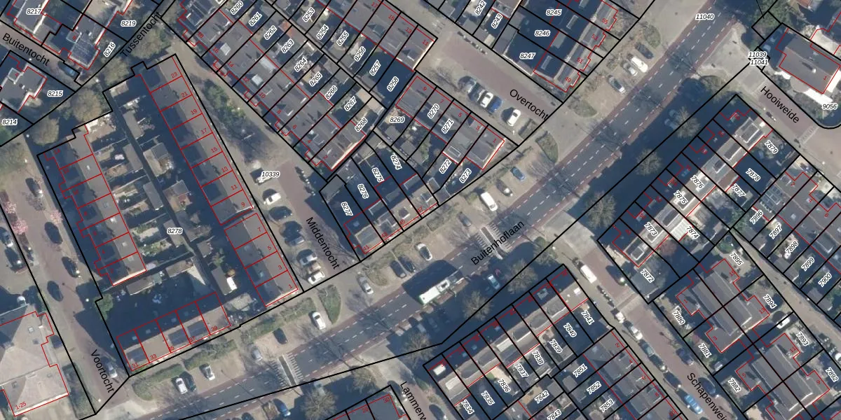 Gebruik de zoekbalk of klik op een perceel voor informatie over de adressen binnen dit perceel.