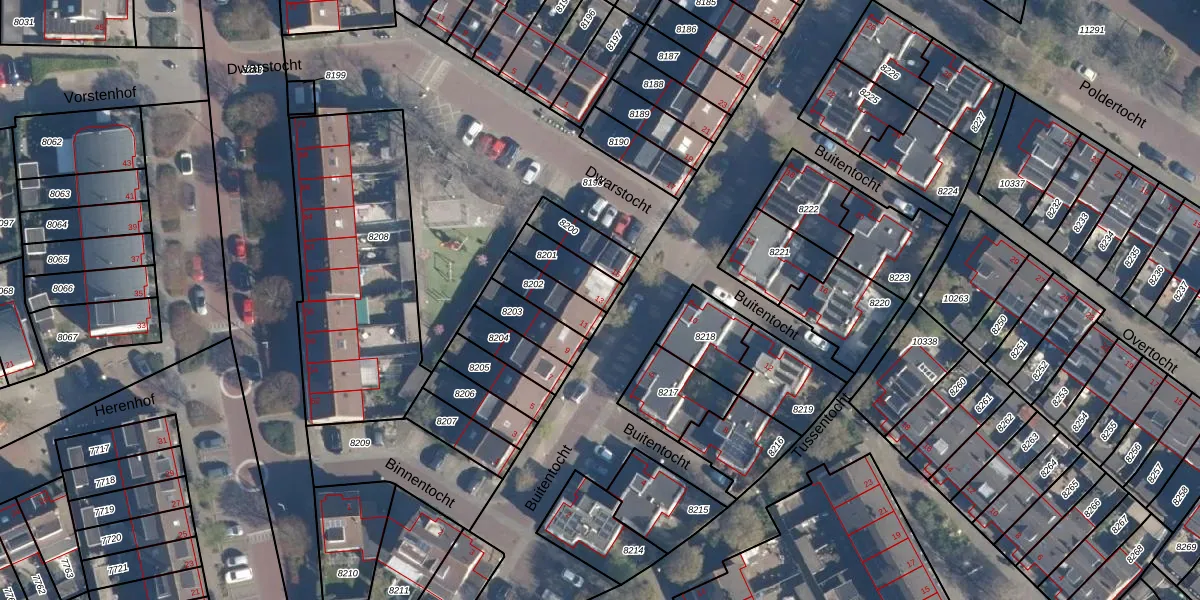Het perceel waarop Buitentocht 13 staat heeft een oppervlakte van 106 m². Dit is een middelgroot perceel. De perceeloppervlakte wordt geregistreerd door het Kadaster. Gedetailleerde informatie over de maten van dit perceel kunt u vinden in het rapport Kadastrale kaart met maatvoering van Buitentocht 13.