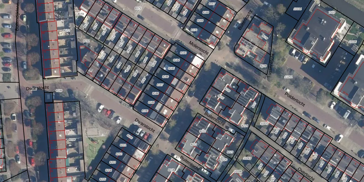 Buitentocht 25 is gelegen op kadastraal perceel LDD00A8186. Deze kadastrale aanduiding is uniek en wordt gebruikt door het Kadaster om eigendomsrechten en andere zakelijke rechten vast te leggen. Het perceel maakt onderdeel uit van de kadastrale gemeente Leiderdorp.