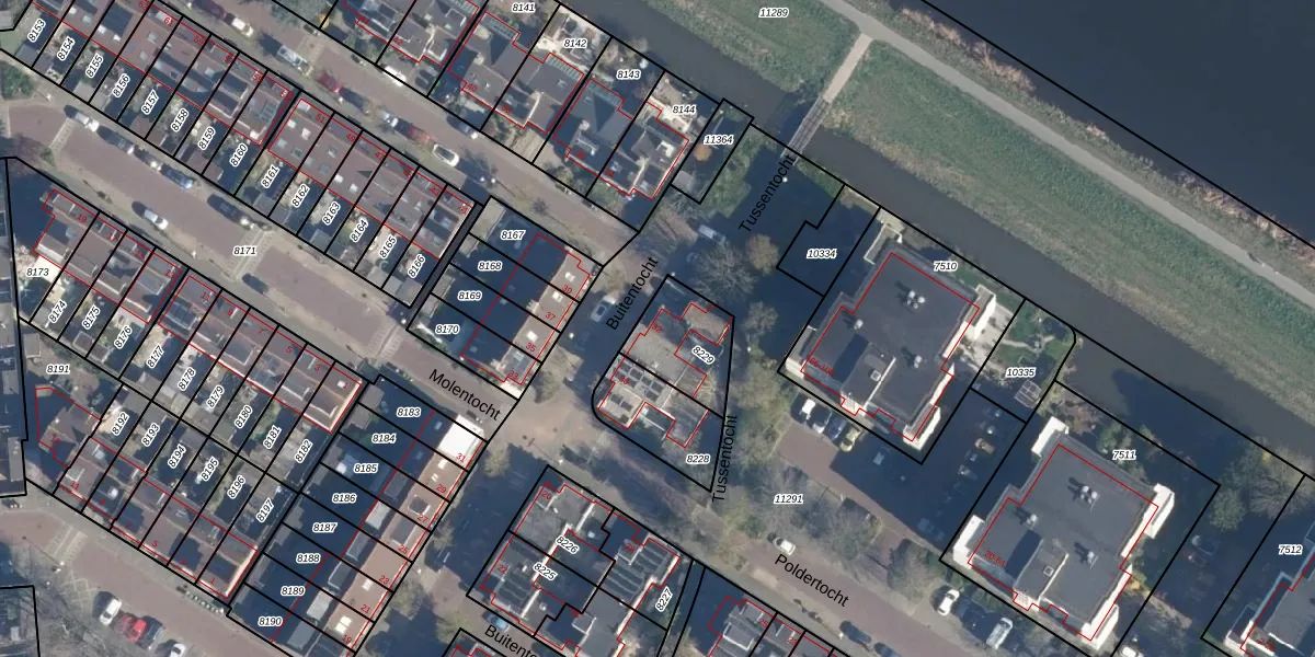 Gebruik de zoekbalk of klik op een perceel voor informatie over de adressen binnen dit perceel.