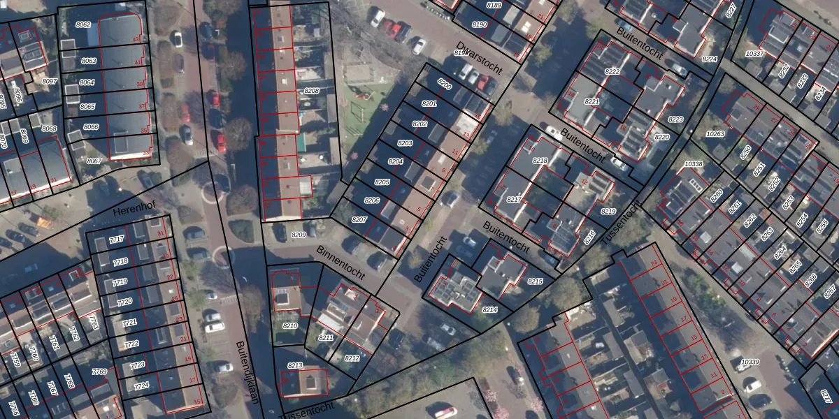 Buitentocht 5 is gelegen op kadastraal perceel LDD00A8205. Deze kadastrale aanduiding is uniek en wordt gebruikt door het Kadaster om eigendomsrechten en andere zakelijke rechten vast te leggen. Het perceel maakt onderdeel uit van de kadastrale gemeente Leiderdorp.