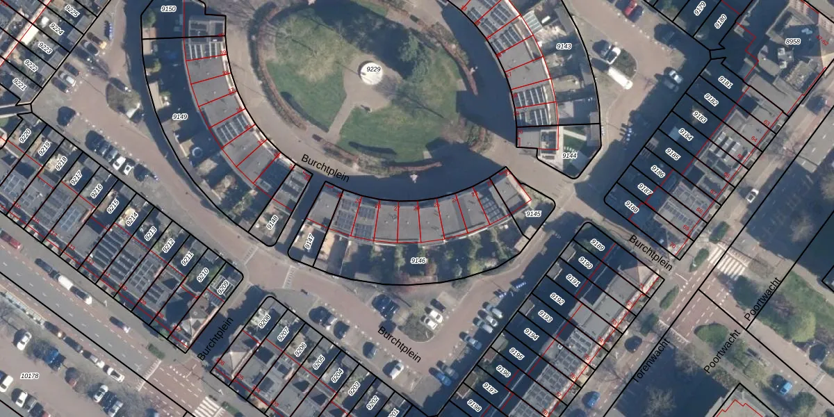 Het perceel waarop Burchtplein 26 staat heeft een oppervlakte van 909 m². Dit is een groot perceel. De perceeloppervlakte wordt geregistreerd door het Kadaster. Gedetailleerde informatie over de maten van dit perceel kunt u vinden in het rapport Kadastrale kaart met maatvoering van Burchtplein 26.