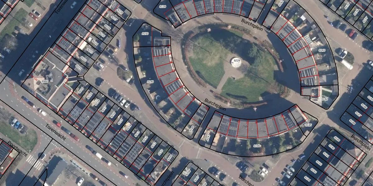 Het perceel waarop Burchtplein 34 staat heeft een oppervlakte van 915 m². Dit is een groot perceel. De perceeloppervlakte wordt geregistreerd door het Kadaster. Gedetailleerde informatie over de maten van dit perceel kunt u vinden in het rapport Kadastrale kaart met maatvoering van Burchtplein 34.