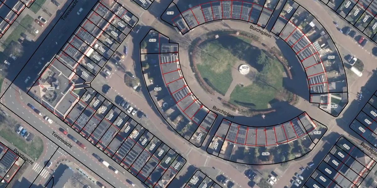 Het perceel waarop Burchtplein 35 staat heeft een oppervlakte van 915 m². Dit is een groot perceel. De perceeloppervlakte wordt geregistreerd door het Kadaster. Gedetailleerde informatie over de maten van dit perceel kunt u vinden in het rapport Kadastrale kaart met maatvoering van Burchtplein 35.