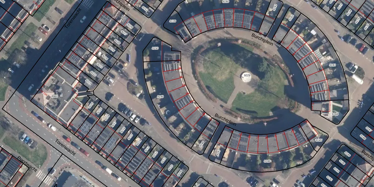 Het perceel waarop Burchtplein 36 staat heeft een oppervlakte van 915 m². Dit is een groot perceel. De perceeloppervlakte wordt geregistreerd door het Kadaster. Gedetailleerde informatie over de maten van dit perceel kunt u vinden in het rapport Kadastrale kaart met maatvoering van Burchtplein 36.