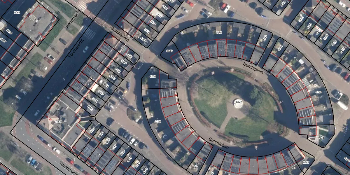Het perceel waarop Burchtplein 40 staat heeft een oppervlakte van 182 m². Dit is een middelgroot perceel. De perceeloppervlakte wordt geregistreerd door het Kadaster. Gedetailleerde informatie over de maten van dit perceel kunt u vinden in het rapport Kadastrale kaart met maatvoering van Burchtplein 40.