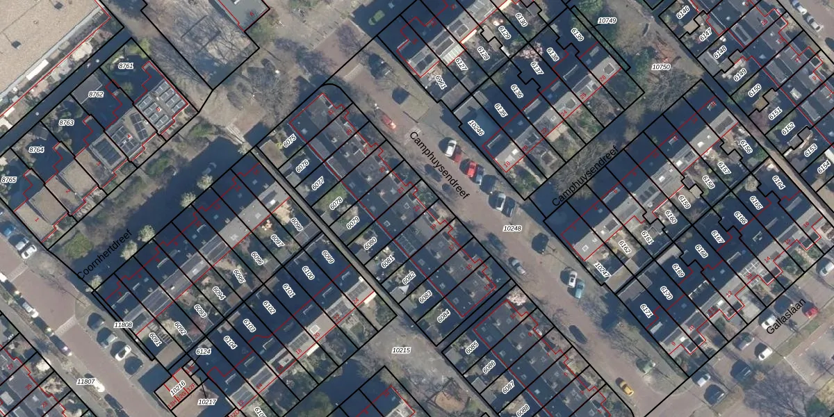 Gebruik de zoekbalk of klik op een perceel voor informatie over de adressen binnen dit perceel.