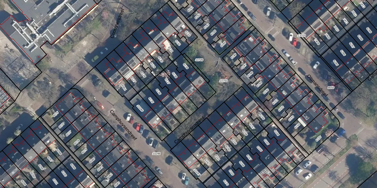 Gebruik de zoekbalk of klik op een perceel voor informatie over de adressen binnen dit perceel.