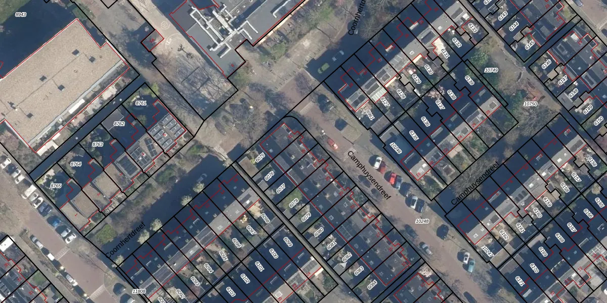 Gebruik de zoekbalk of klik op een perceel voor informatie over de adressen binnen dit perceel.