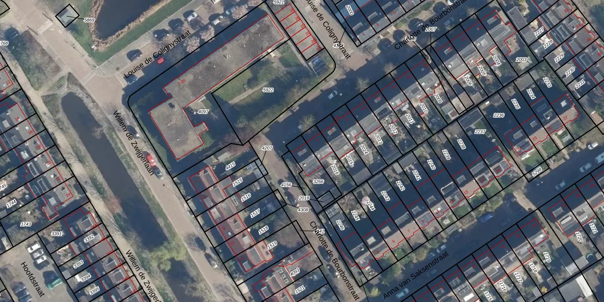 Gebruik de zoekbalk of klik op een perceel voor informatie over de adressen binnen dit perceel.