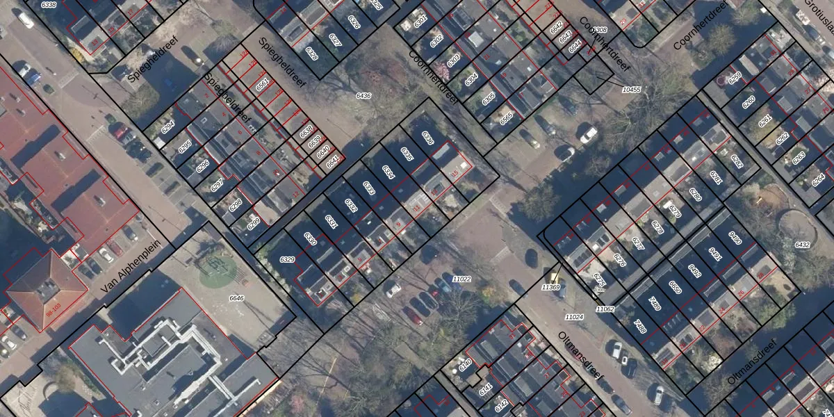 Gebruik de zoekbalk of klik op een perceel voor informatie over de adressen binnen dit perceel.