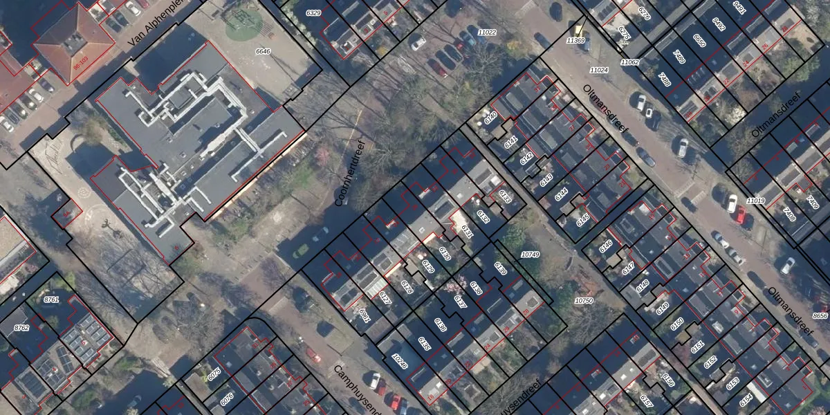 Gebruik de zoekbalk of klik op een perceel voor informatie over de adressen binnen dit perceel.