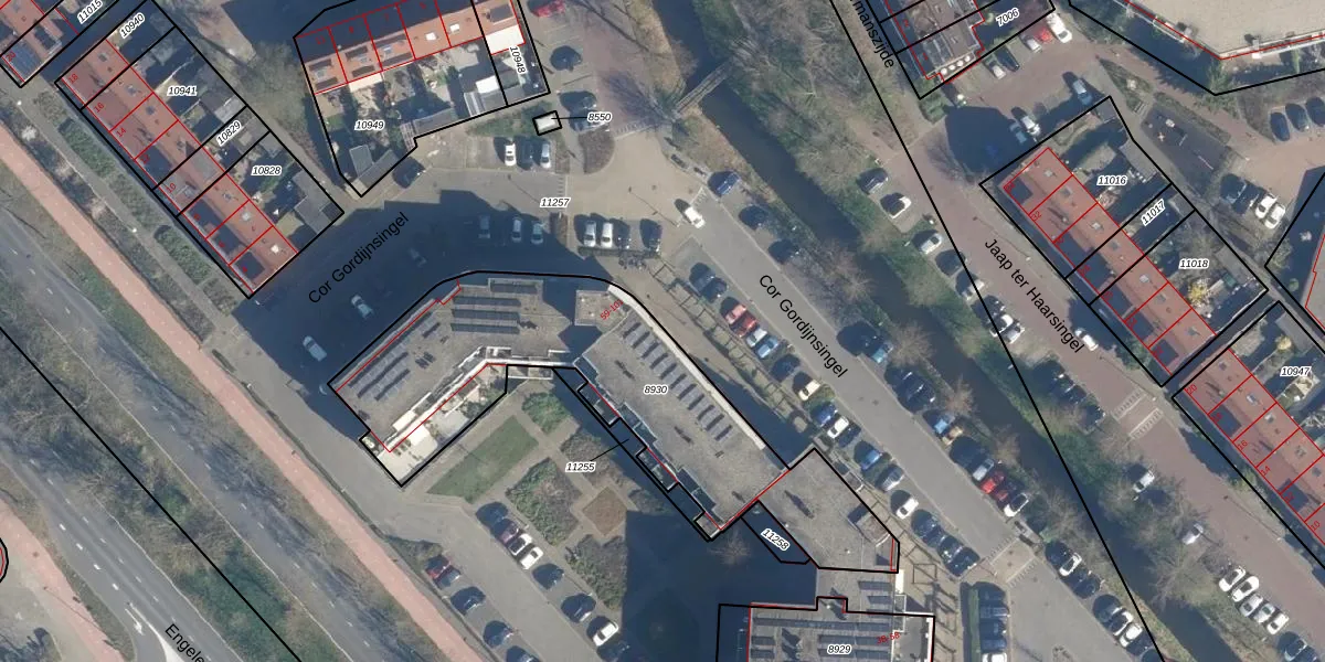 Het perceel waarop Cor Gordijnsingel 63 staat heeft een oppervlakte van 1465 m². Dit is een zeer groot perceel. De perceeloppervlakte wordt geregistreerd door het Kadaster. Gedetailleerde informatie over de maten van dit perceel kunt u vinden in het rapport Kadastrale kaart met maatvoering van Cor Gordijnsingel 63.