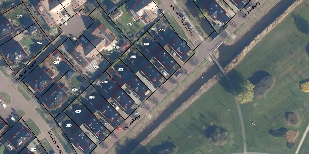 Gebruik de zoekbalk of klik op een perceel voor informatie over de adressen binnen dit perceel.