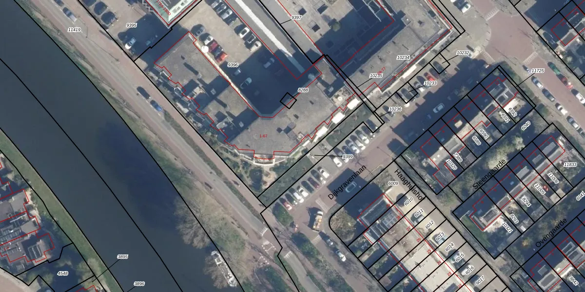 Dijkgravenlaan 13 is gelegen op kadastraal perceel LDD00A9396. Deze kadastrale aanduiding is uniek en wordt gebruikt door het Kadaster om eigendomsrechten en andere zakelijke rechten vast te leggen. Het perceel maakt onderdeel uit van de kadastrale gemeente Leiderdorp.