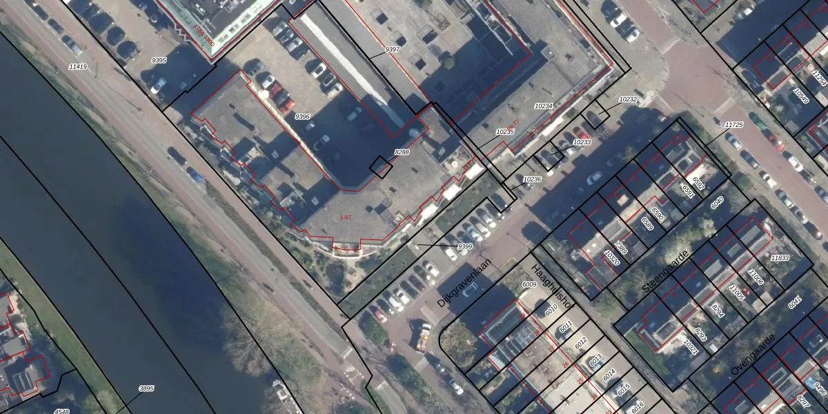 Het adres ligt op het perceel LDD00-A-9396, dat zich in de kadastrale gemeente Leiderdorp bevindt. Het perceel is met 2898 m² relatief groot. Het gemiddelde ligt in de kadastrale gemeente Leiderdorp op 1285,95 m². De grootste perceeloppervlakte in de kadastrale gemeente is 43,4 ha. De kleinste oppervlakte bedraagt 0 m². Op het perceel liggen in totaal 34 adressen. De huidige grenzen van het perceel zijn digitaal in de Basisregistratie Kadaster (BRK) geregistreerd op 22-08-2003.