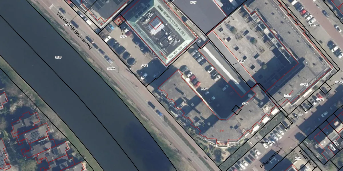 Het adres ligt op het perceel LDD00-A-9396, dat zich in de kadastrale gemeente Leiderdorp bevindt. De oppervlakte van het perceel is 2898 m². Dat is groter dan gemiddeld in Leiderdorp, waar de gemiddelde perceeloppervlakte op 1289,87 m² ligt. Het kleinste perceel in de kadastrale gemeente is 0 m² groot. De grootste perceeloppervlakte is 43,4 ha. Op het perceel zijn 34 adressen aanwezig. In de Basisregistratie Kadaster (BRK) werden de grenzen van het perceel geregistreerd op 22-08-2003.