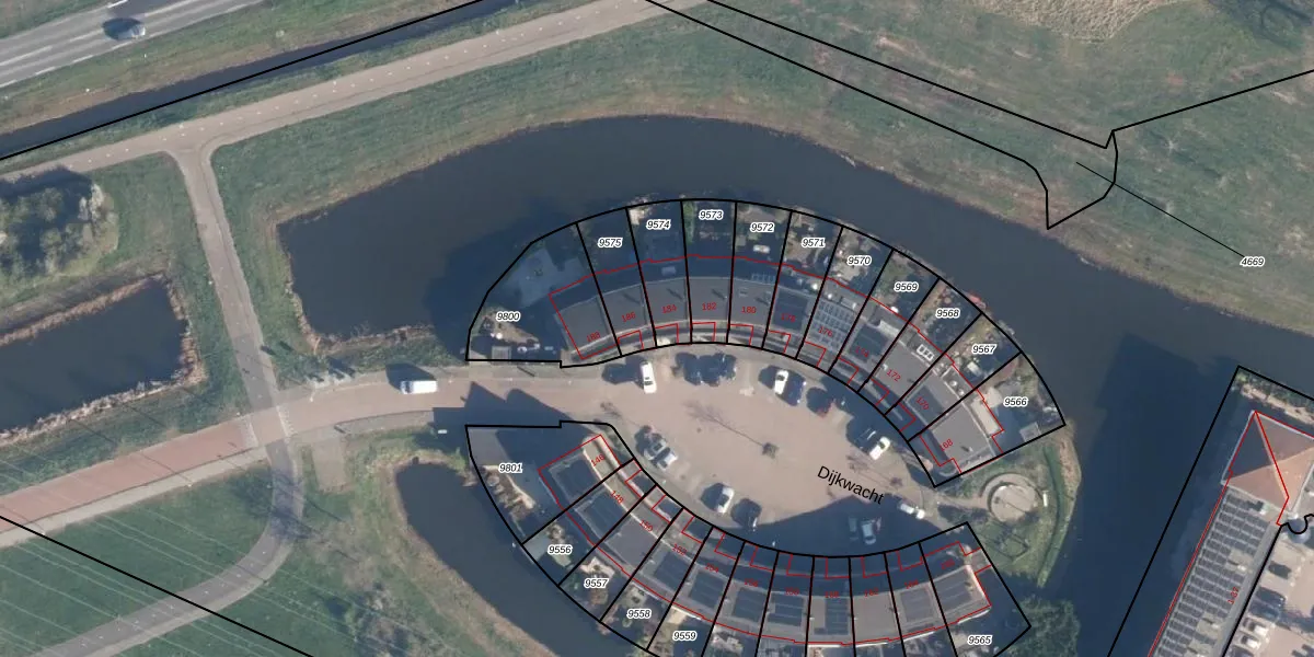 Dijkwacht 184 is gelegen op kadastraal perceel LDD00A9574. Deze kadastrale aanduiding is uniek en wordt gebruikt door het Kadaster om eigendomsrechten en andere zakelijke rechten vast te leggen. Het perceel maakt onderdeel uit van de kadastrale gemeente Leiderdorp.