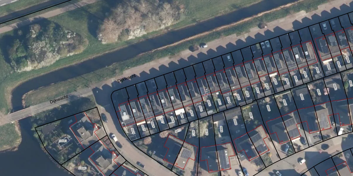Het perceel waarop Dijkwacht 30 staat heeft een oppervlakte van 173 m². Dit is een middelgroot perceel. De perceeloppervlakte wordt geregistreerd door het Kadaster. Gedetailleerde informatie over de maten van dit perceel kunt u vinden in het rapport Kadastrale kaart met maatvoering van Dijkwacht 30.