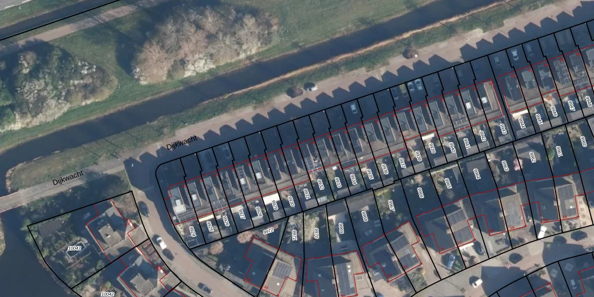 Het perceel waarop Dijkwacht 34 staat heeft een oppervlakte van 173 m². Dit is een middelgroot perceel. De perceeloppervlakte wordt geregistreerd door het Kadaster. Gedetailleerde informatie over de maten van dit perceel kunt u vinden in het rapport Kadastrale kaart met maatvoering van Dijkwacht 34.