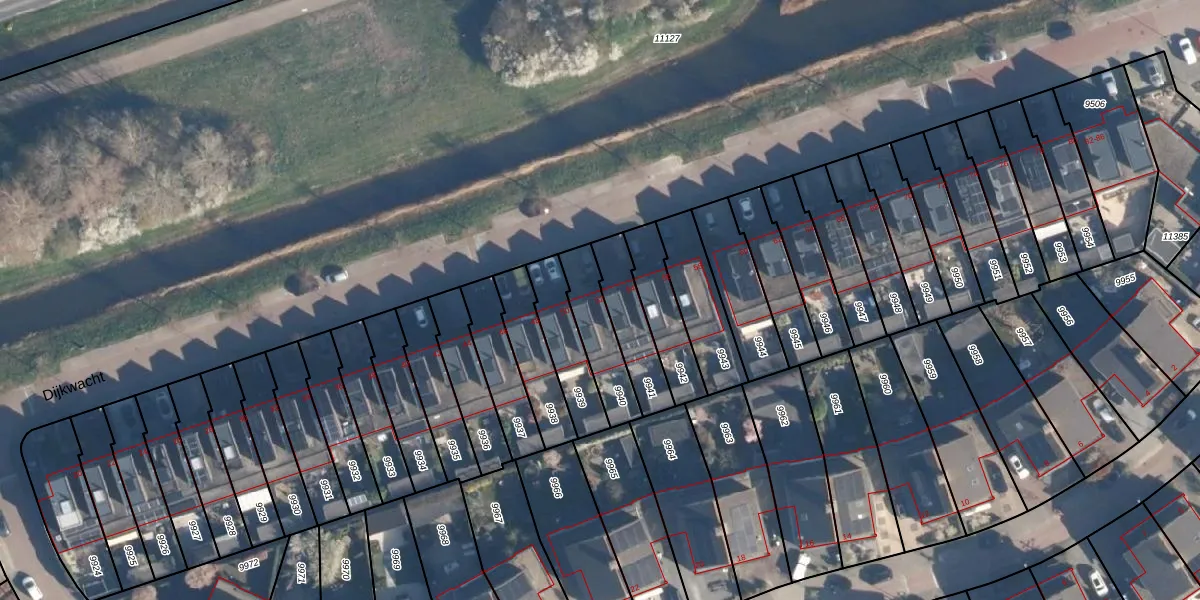 Het perceel waarop Dijkwacht 52 staat heeft een oppervlakte van 173 m². Dit is een middelgroot perceel. De perceeloppervlakte wordt geregistreerd door het Kadaster. Gedetailleerde informatie over de maten van dit perceel kunt u vinden in het rapport Kadastrale kaart met maatvoering van Dijkwacht 52.