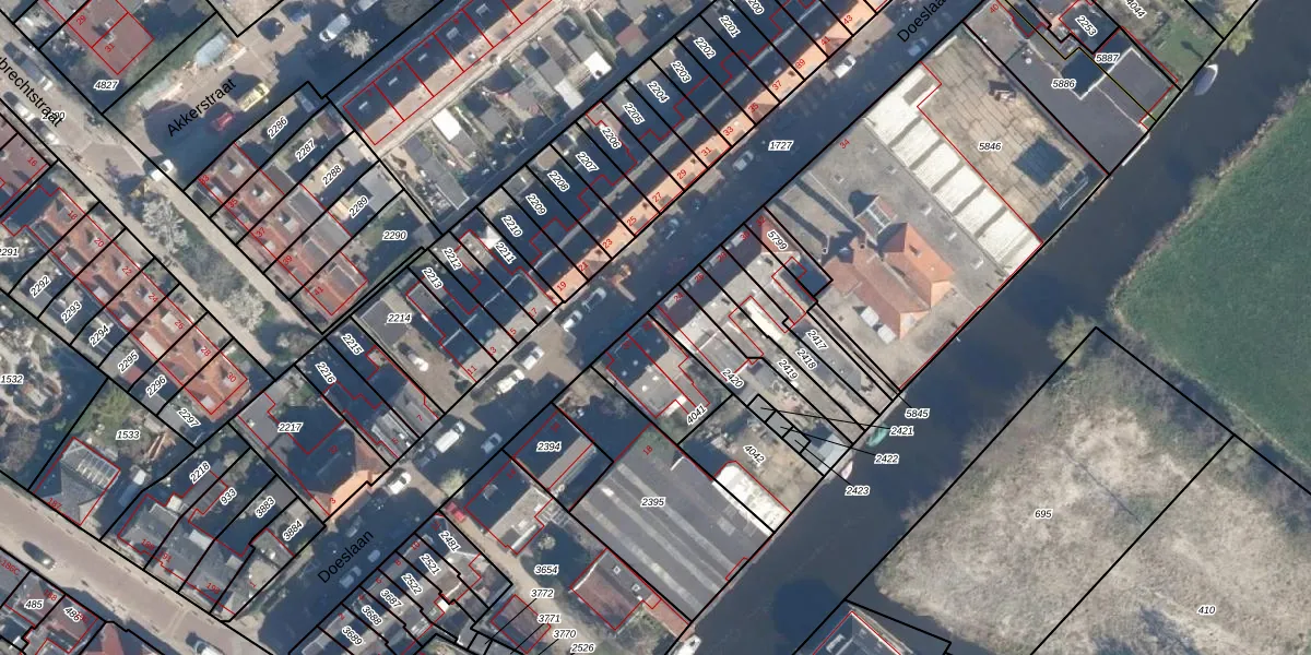 Doeslaan 22 is gelegen op kadastraal perceel LDD00B4041. Deze kadastrale aanduiding is uniek en wordt gebruikt door het Kadaster om eigendomsrechten en andere zakelijke rechten vast te leggen. Het perceel maakt onderdeel uit van de kadastrale gemeente Leiderdorp.