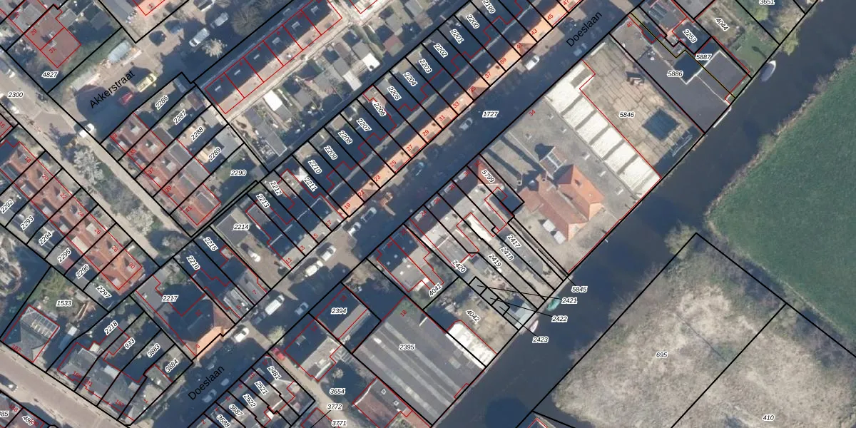 Doeslaan 24 is gelegen op kadastraal perceel LDD00B2420. Deze kadastrale aanduiding is uniek en wordt gebruikt door het Kadaster om eigendomsrechten en andere zakelijke rechten vast te leggen. Het perceel maakt onderdeel uit van de kadastrale gemeente Leiderdorp.