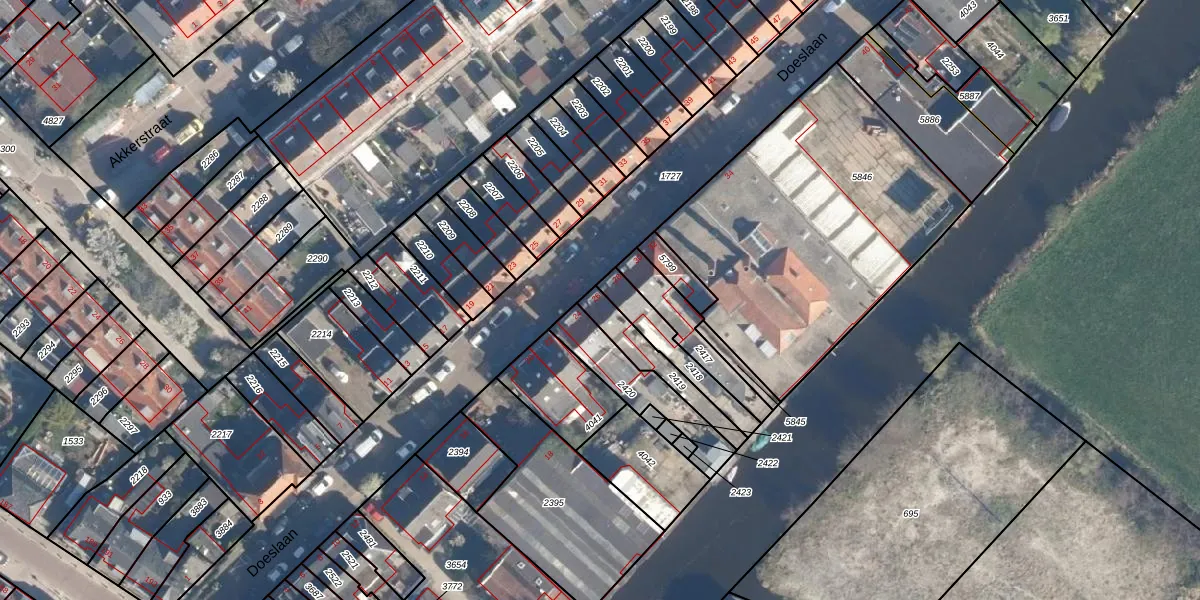 Doeslaan 26 is gelegen op kadastraal perceel LDD00B2419. Deze kadastrale aanduiding is uniek en wordt gebruikt door het Kadaster om eigendomsrechten en andere zakelijke rechten vast te leggen. Het perceel maakt onderdeel uit van de kadastrale gemeente Leiderdorp.