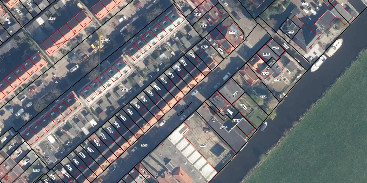 Doeslaan 49 is gelegen op kadastraal perceel LDD00B2195. Deze kadastrale aanduiding is uniek en wordt gebruikt door het Kadaster om eigendomsrechten en andere zakelijke rechten vast te leggen. Het perceel maakt onderdeel uit van de kadastrale gemeente Leiderdorp.