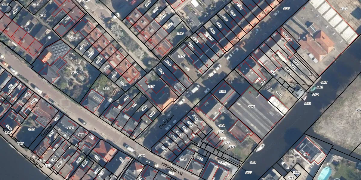 Doeslaan 5 is gelegen op kadastraal perceel LDD00B2216. Deze kadastrale aanduiding is uniek en wordt gebruikt door het Kadaster om eigendomsrechten en andere zakelijke rechten vast te leggen. Het perceel maakt onderdeel uit van de kadastrale gemeente Leiderdorp.