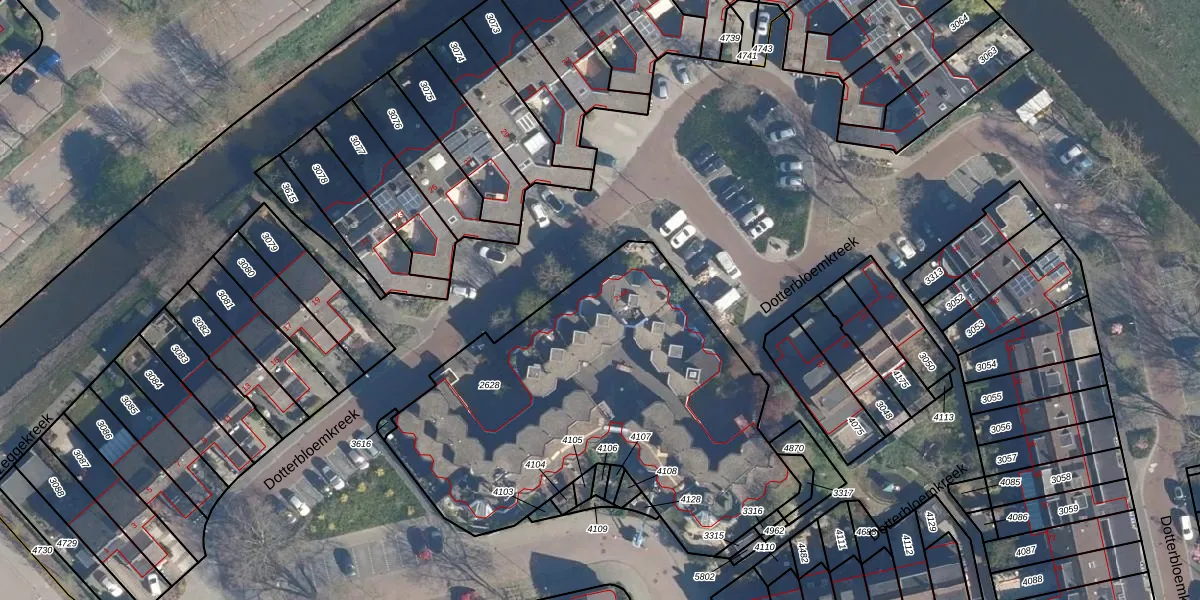 Het perceel waarop Dotterbloemkreek 24 staat heeft een oppervlakte van 2035 m². Dit is een zeer groot perceel. De perceeloppervlakte wordt geregistreerd door het Kadaster. Gedetailleerde informatie over de maten van dit perceel kunt u vinden in het rapport Kadastrale kaart met maatvoering van Dotterbloemkreek 24.