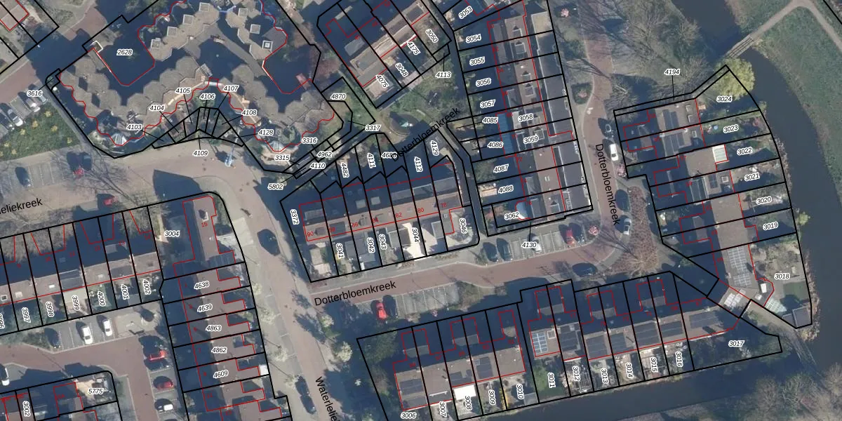 Gebruik de zoekbalk of klik op een perceel voor informatie over de adressen binnen dit perceel.