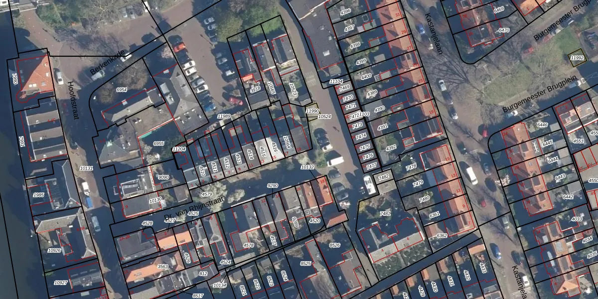 Dr. van Rhijnstraat 19 is gelegen op kadastraal perceel LDD00A10524. Deze kadastrale aanduiding is uniek en wordt gebruikt door het Kadaster om eigendomsrechten en andere zakelijke rechten vast te leggen. Het perceel maakt onderdeel uit van de kadastrale gemeente Leiderdorp.