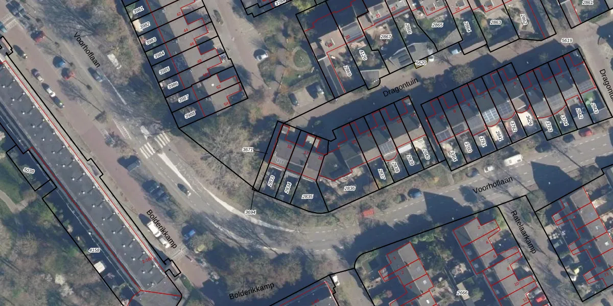 Gebruik de zoekbalk of klik op een perceel voor informatie over de adressen binnen dit perceel.