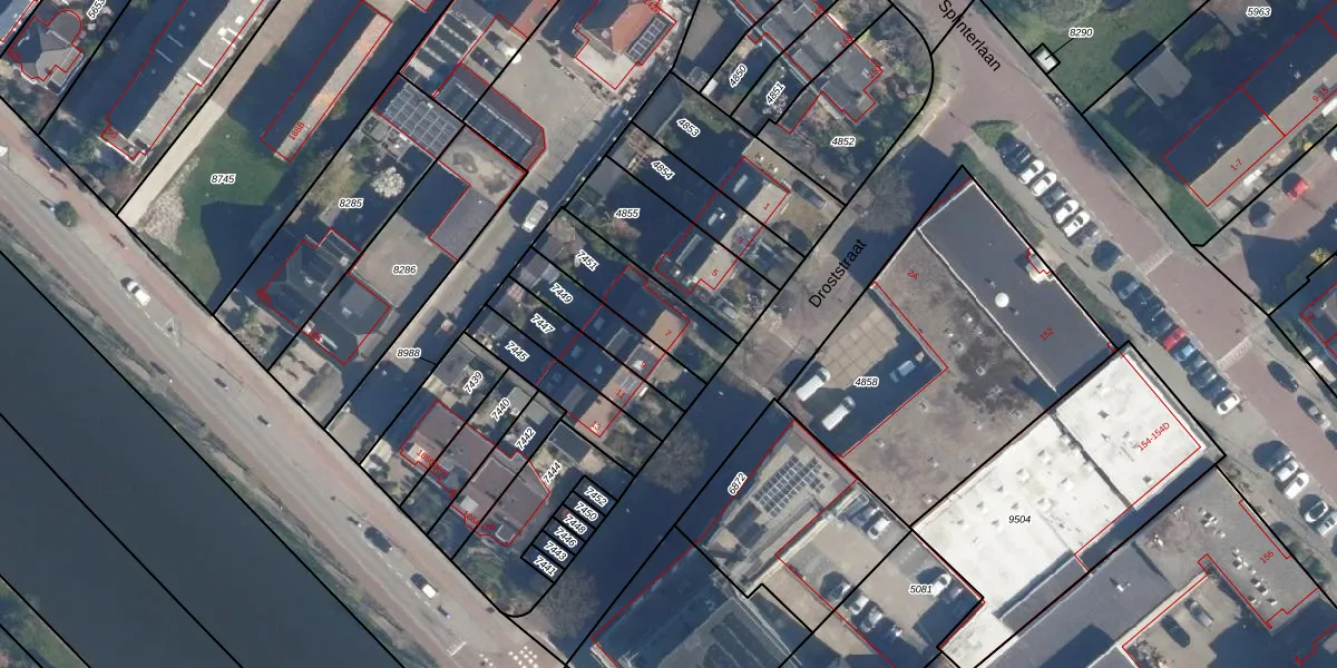 Het perceel waarop Droststraat 7 staat heeft een oppervlakte van 258 m². Dit is een middelgroot perceel. De perceeloppervlakte wordt geregistreerd door het Kadaster. Gedetailleerde informatie over de maten van dit perceel kunt u vinden in het rapport Kadastrale kaart met maatvoering van Droststraat 7.